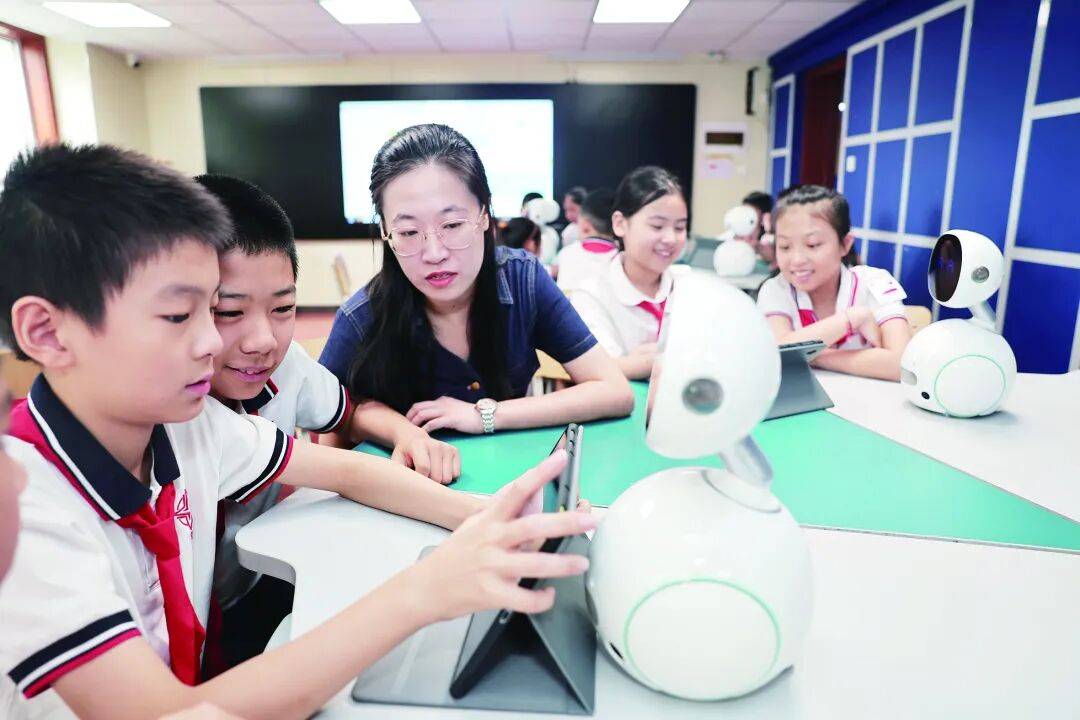 在北辰区青光小学四年(3)班的课堂上,一场关于“人工智能机器人”的探索正在上演。授课教师王赛赛点开平台资源包里的动画视频,一个个机器人仿佛被注入了生命:它们的内部结构在屏幕上立体呈现,运动轨迹清晰明了。最让学生兴奋的是动手环节——当简易机器人教具被分发到小组时,一双双小手小心翼翼地触摸着每一个部件,不时发出阵阵惊叹。在这所乡镇小学的课堂上,AI不再是遥远的概念,而是触手可及的现实……今年秋季学期,“人工智能”(AI)成为天津中小学课表上的正式课程。在“天津中小学智慧教育平台”上,专门开设了人工智能课程专区,为义务教育一至九年级和高中一、二年级的人工智能通识课提供包括教学课件、教学设计、微课视频、活动素材在内的全套资源包。这套凝聚了全市智慧的市级资源包上线后,在各所学校的创造性实践中焕发出蓬勃生机。