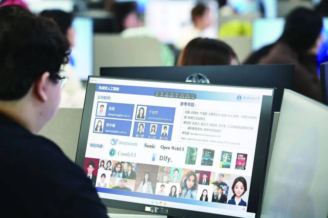 天津市职业教育“人工智能+”行动中,明确提出重构专业体系、加强教材建设等要求。2024年11月,世界职业技术教育发展大会在天津举办期间,天津市人工智能赋能职业教育创新发展联盟正式成立。作为联盟首个重要成果,《人工智能通识教程》数字教材于成立大会上发布。“该教材是落实教育部创新教材呈现方式、加快以数字教材为引领的新形态教材建设要求,由联盟内职业院校和行业头部企业联合编制而成。”教材主编、天津现代职业技术学院信息工程学院院长杨美霞介绍,教材面向全国职业院校所有专业开发,采用“项目导向、任务驱动”的编写模式,内容涵盖人工智能基础理论、行业应用、国产大模型等知识点,是具有融媒体、交互式、智能化特征的新一代数字教材,并配有丰富的数字化教学资源。目前,该教材已在全市多所职业院校推广使用,其“人工智能+实战讲解+模块化实训”的架构显著提升了教育教学效果。与此同时,市教委积极探索在全市高职院校面向各专业(不含人工智能相关专业)低年级开设不少于16学时的人工智能技术与应用通识课程。通过联盟成员单位的协同合作,打造人工智能课程共建共享平台,重点开发了人工智能“1+X+Y”系列课程资源,即,1门人工智能通识课,X门“人工智能+”技能素养课,Y门“人工智能+”岗位实训课。组建天津市人工智能赋能职业教育创新发展联盟,开发《人工智能通识教程》数字教材,推动人工智能“1+X+Y”系列课程建设,三者相互关联、协同发力,形成“人工智能+”提升行动计划的闭环链条。