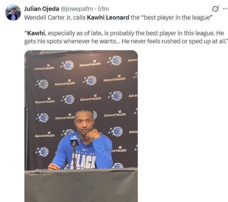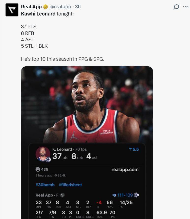 数据不会说谎,它揭示了快船队令人尴尬的现状。 当伦纳德坐在场下时,这支球队的进攻效率骤降至联盟倒数第三,防守效率也滑落到下游,净效率值更是惨不忍睹的-6.2,俨然一副鱼腩球队的模样。 而当他踏上球场,快船的进攻效率瞬间飙升至联盟第四,整体实力足以排进联盟前十。 这种天壤之别的“伦纳德效应”,将他独自扛起球队的悲壮与无奈,刻画得淋漓尽致。 队友小温德尔·卡特在赛后直言,伦纳德就是联盟中最出色的球员之一,总能在球队需要时挺身而出。 这份赞誉的背后,何尝不是对球队其他球员贡献不足的无声注解?
